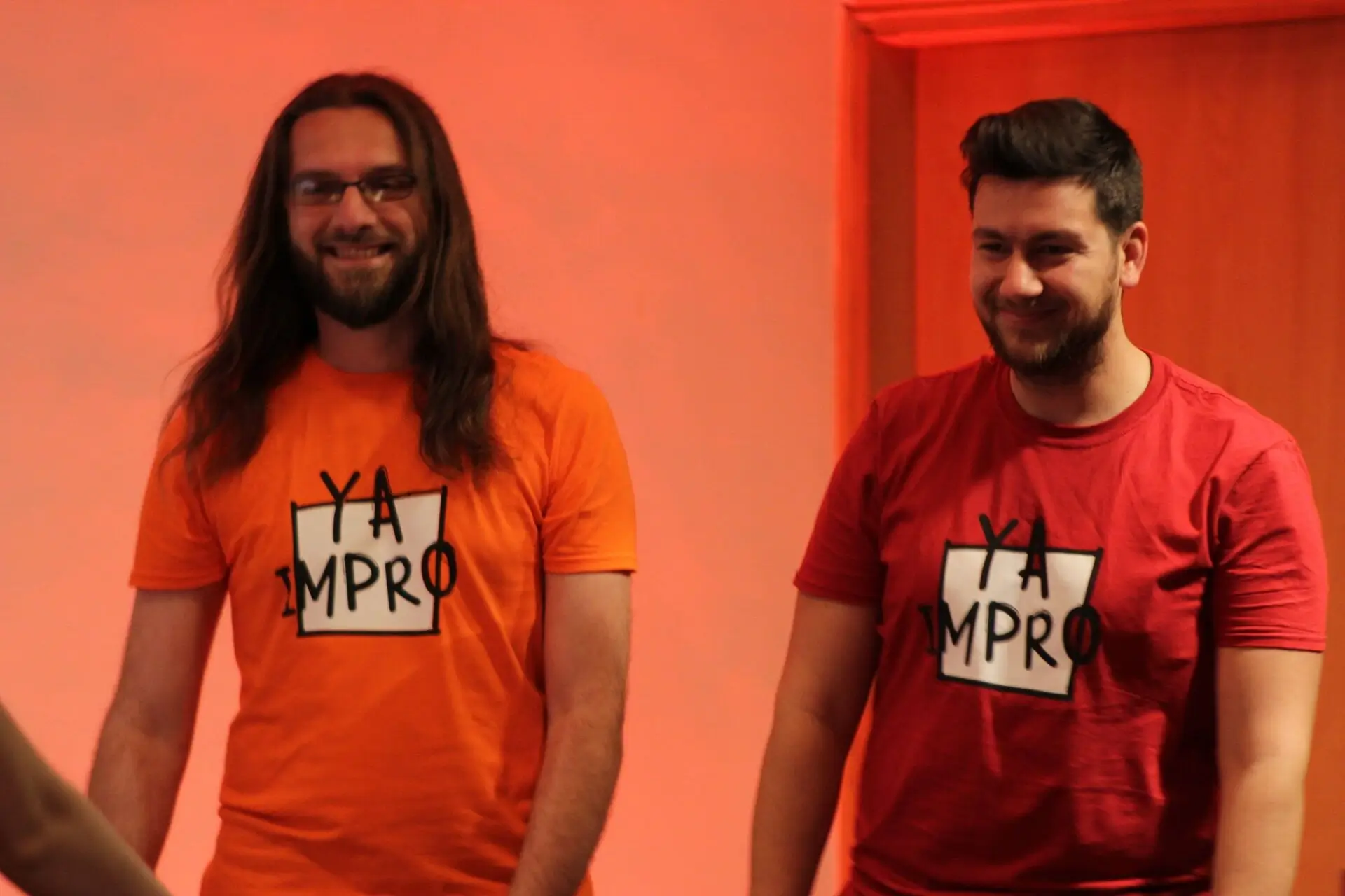 Ya impro: I’m Kostandinos and this is Serafim, it has happened that there is someone in the audience who refuses to budge or participate but that is ok with us anyway, this is improvisation.