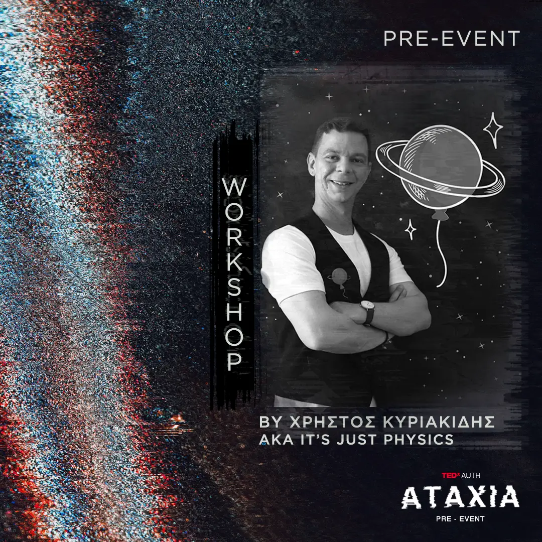 Με το workshop αυτό θα προσεγγίσουμε έννοιες που τρομάζουν το ανθρώπινο είδος από την αρχή του. Με όπλο μας τη λογική θα προσπαθήσουμε να παραβιάσουμε την ροπή του σύμπαντος και να βάλουμε τάξη στην «αταξία». Μπορούμε, ωστόσο, να επηρεάσουμε την αυθόρμητη τάση του κόσμου στο πέρασμα του χρόνου; Και στην τελική… τι είναι άραγε ο «χρόνος»;